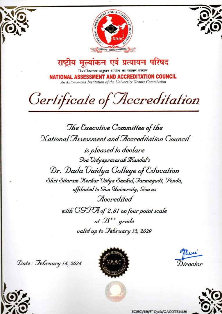 Accreditation by NAAC with B++ grade and CGPA of 2.81
